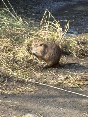 近くの釣り人に聞いたら「あれはヌートリアだよ〜」ってサラッと言われた。